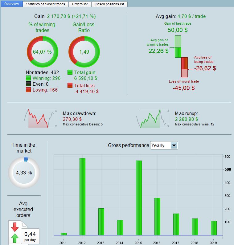Thank you for your input. I will take each year and look at them seperately, that seems like a good idea. I dont know though how reliable that test will be as the number of trades is about 50/year. Maybe Ill do two years at a time and at least have about 100 trades to look at. I can see how the result is going down during the last three years and it seems to be the average win that is going down a bit as well as some fewer trades. The % of winners are constant. I think I will run all my strategies with the Monte Carlo just to get a feeling of how to use it. I am sure it is a good tool if used correct.