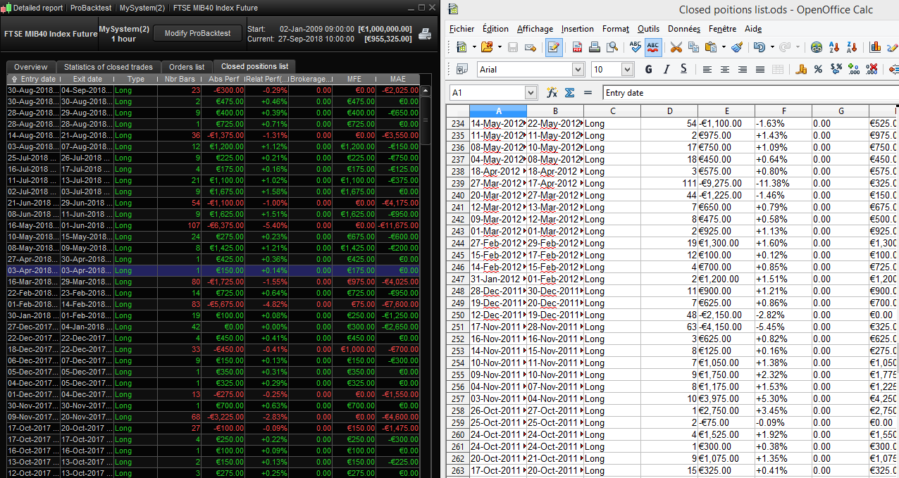 - Open side to side the software inside which you want to export the data and the ProRealTime window from which you want to export the data