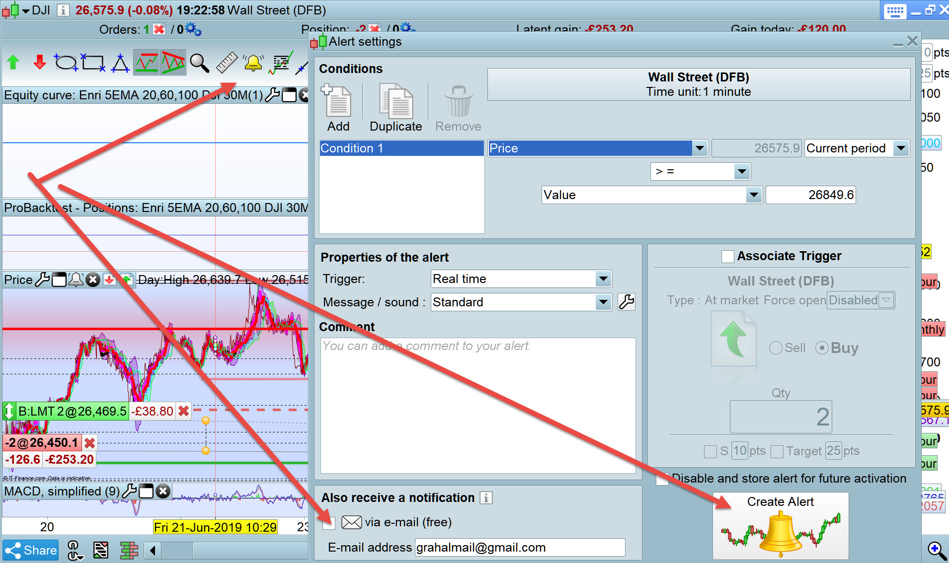 How can i send me an email or alert (as reactive as possible) from PRT with IG ?