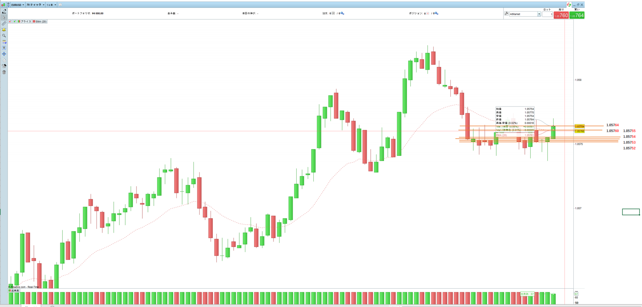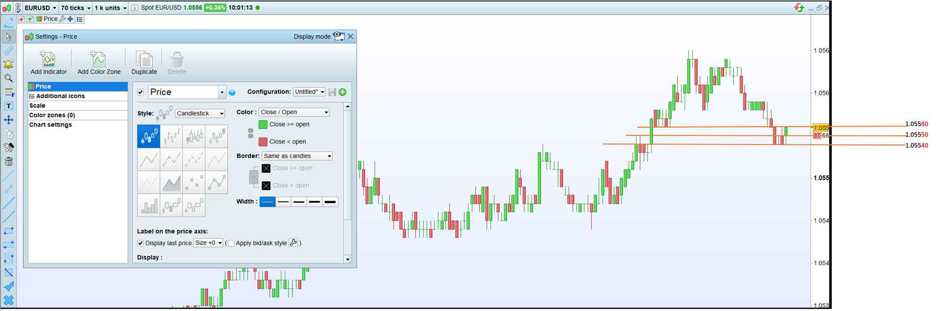 I couldn’t use the Tick chart because of the trial, but with Spot it certainly seems to be in 1 Pips increments.