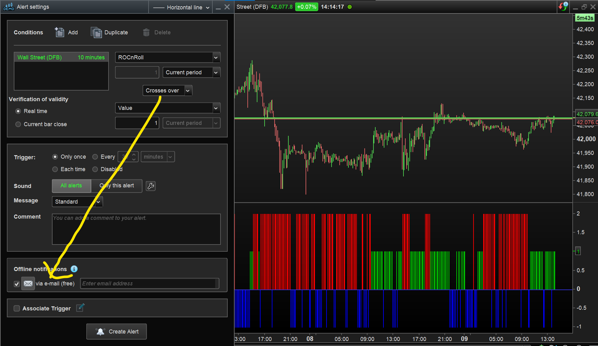 Dear friends, I have started to explore the possibilities of this wonderful product in more detail. Could you please tell me if there is a way to receive notifications via email when any signal is triggered? I see the option to send a chart to a list of email recipients, but is it possible to set it up so that an image is sent automatically when a certain pattern is reached? I would appreciate any help!