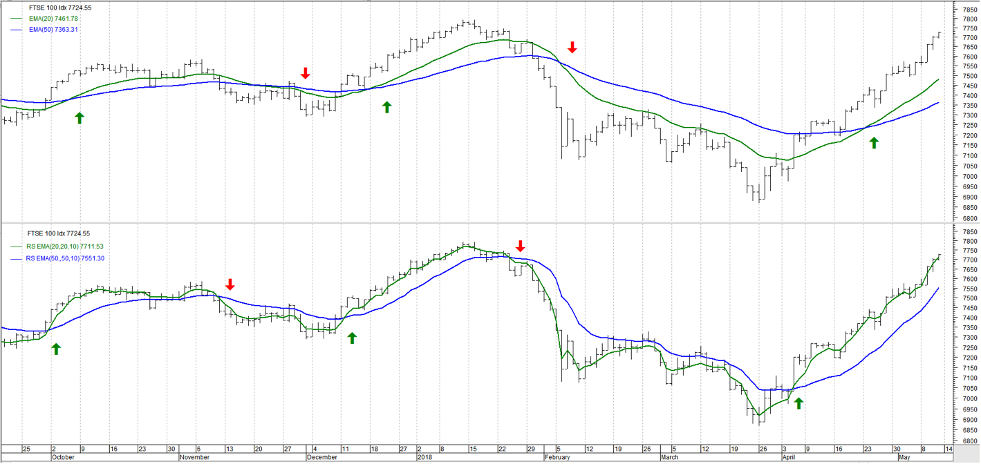It said this in RS EMA has less lags than the normal EMA (see attached png).
