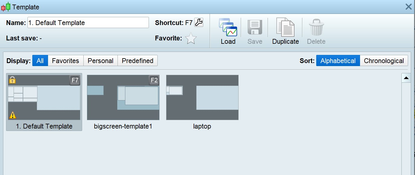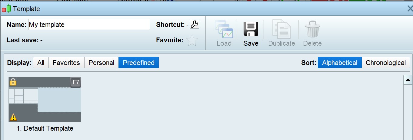 The template is a predefined template. You can see from the screenshot it has a ‘Lock’ icon. Its name is ‘1. Default Template’ . I can create a template ‘Default Template’; but it does not override this one.