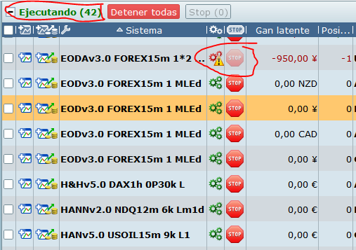 I have attached a picture because it´s something that never happened to me, a system with an error, running with a position and I cannot stop it or do nothing about it