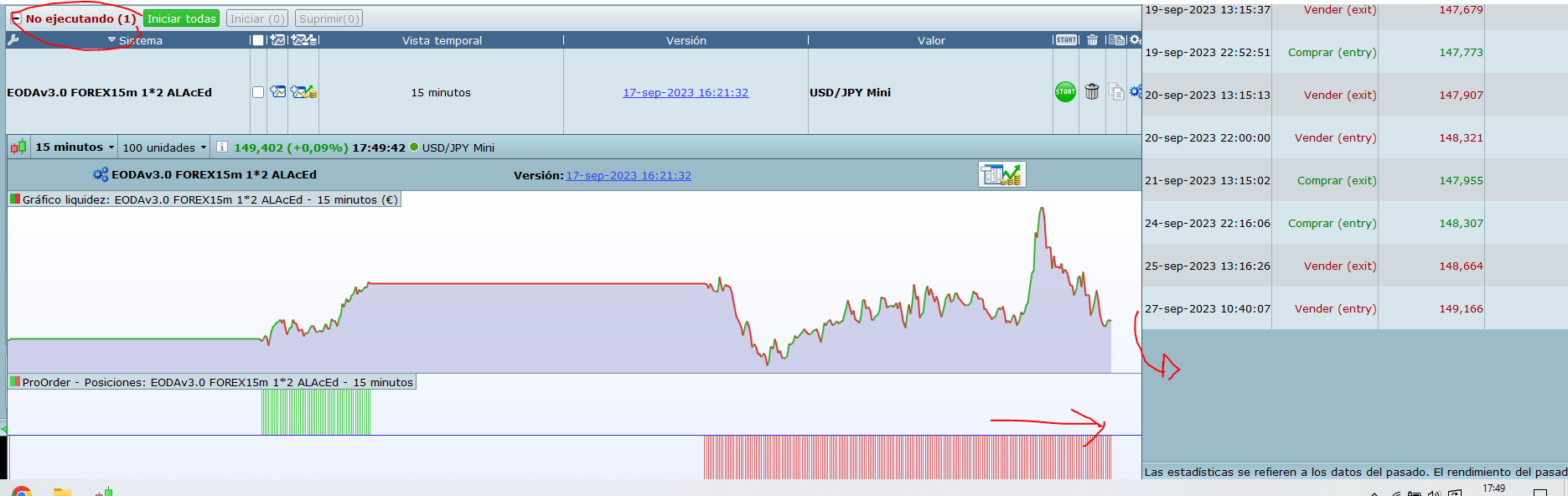 But this time there is a new interesting turn. The system appear as “Running” in ProOrder. It appear with an error but it didn´t go to “Not Running” section of the table as they always do with an error. The system is blocked and I cannot stop it manually or otherwise. And the worst part is that it appear with a position opened that I closed in the broker and shouldn´t be there. I don´t really know if that position is opened or not…!!