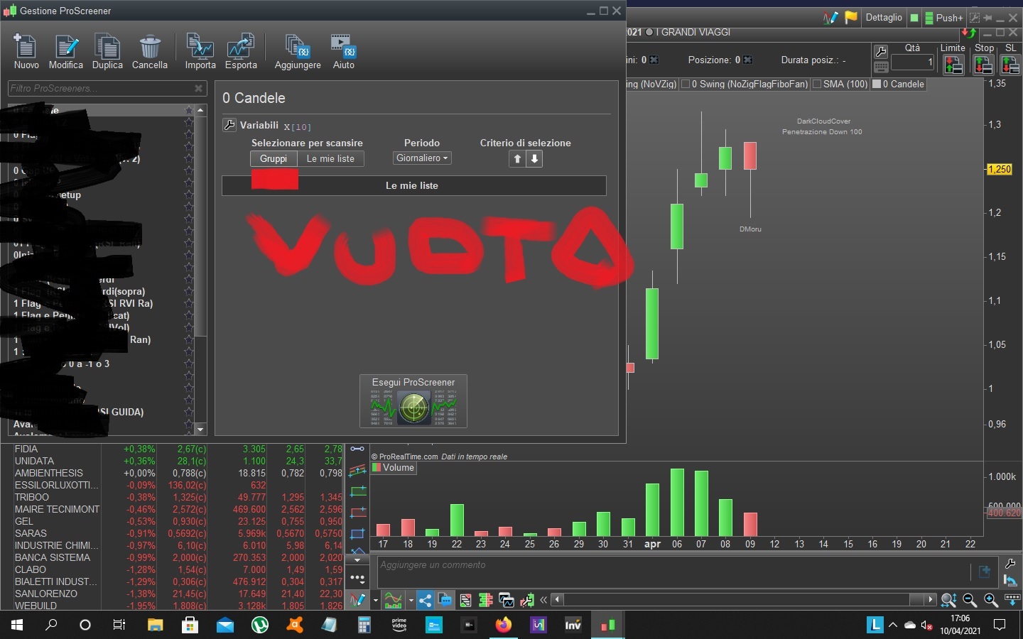 Per meglio dire nelal sezione Screener di mercato non ho più la posissibilità di selezionare i mercati predefiniti (per capirsi Italia40, Azioni Italia etc) ma solo le mie liste personalizzate.