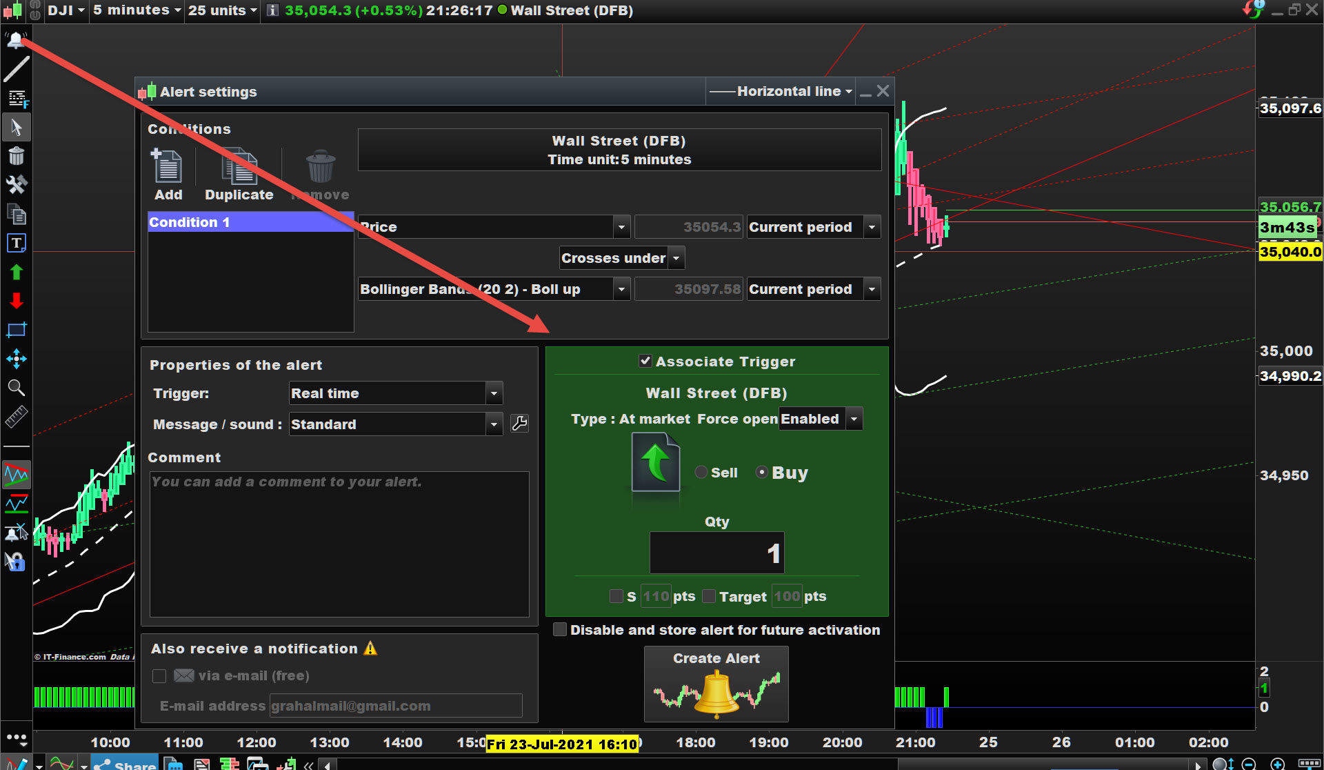 I can’t work out how to set an alert to trigger (and preferably a buy/sell signal)