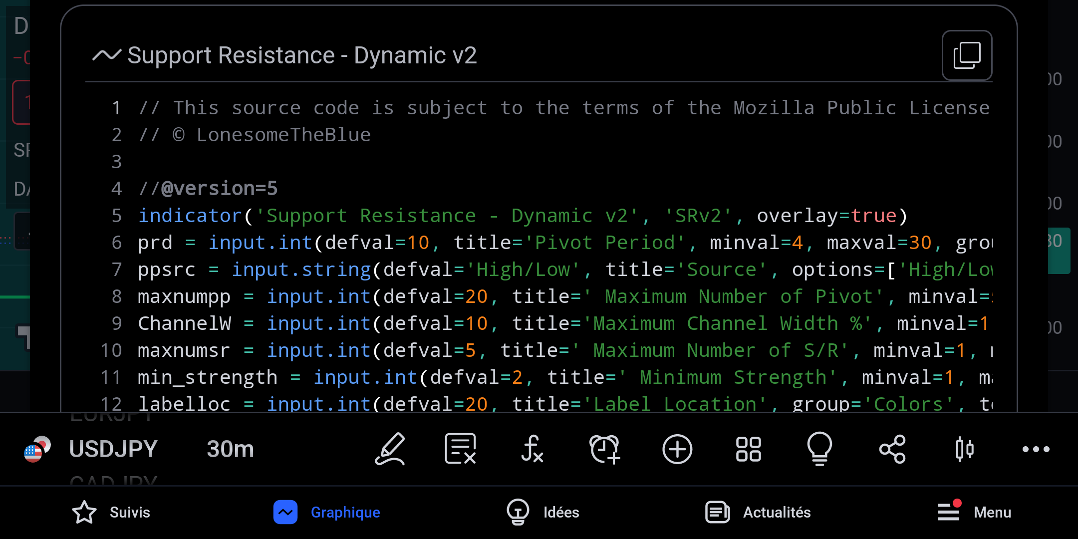 indicator(‘Support Resistance – Dynamic v2’, ‘SRv2′, overlay=true)