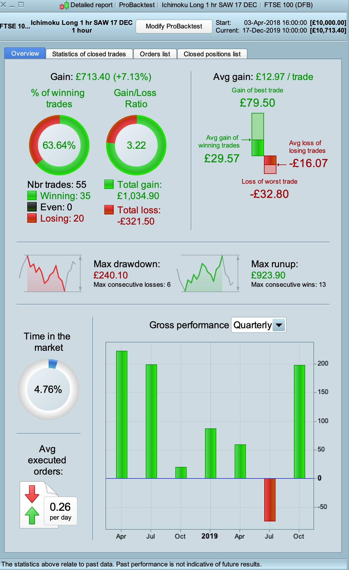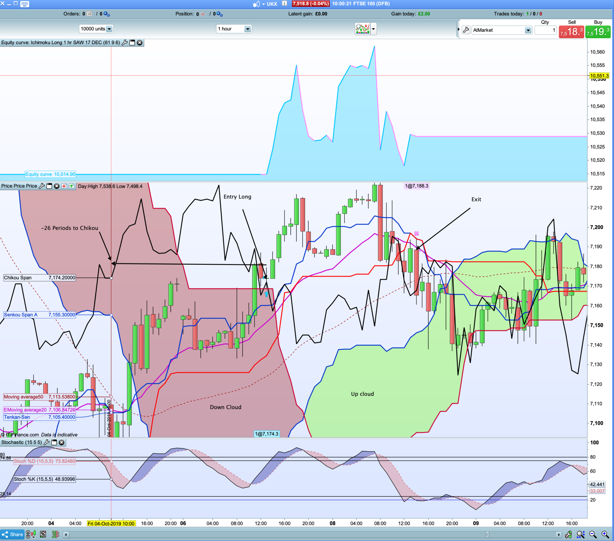 I’m trying to develop an Ichimoku trade for long only (using this as a building block for long & short) on the 1 hour FTSE chart.