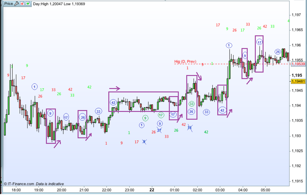 drawtext("#i#",barindex-4-4,high+pipsize*10) coloured(255,0,0)