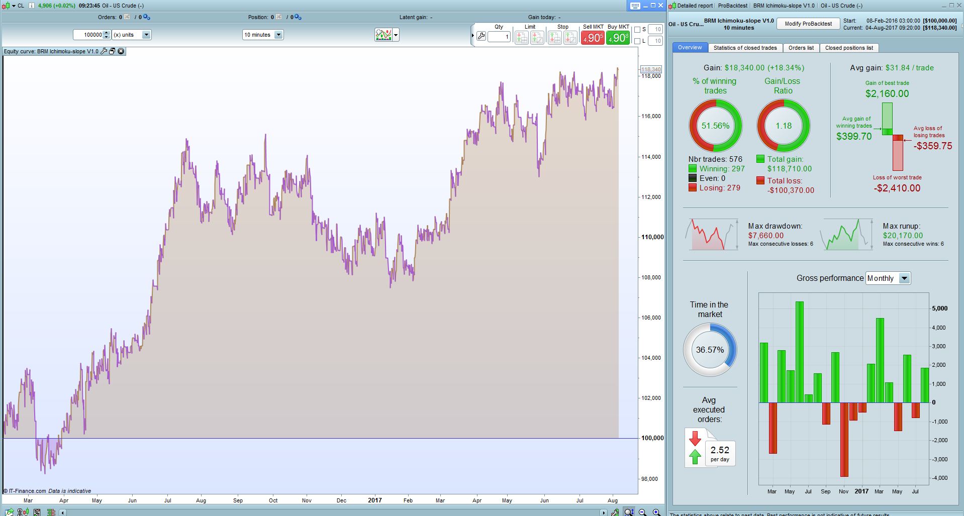 @bmentink apologies. I forgot about your request to post the code. Here it is along with my result on CL (US Crude on 10min with spread set to 2.8):