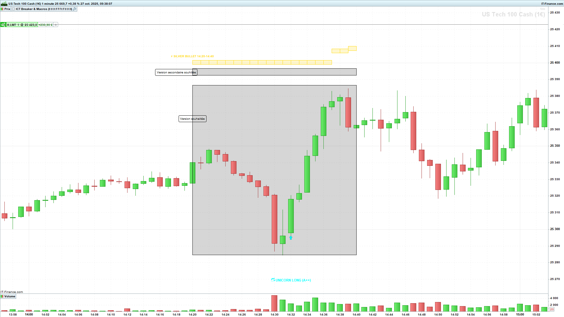 Je souhaiterais dans l’indicateur ci-joint, que les horaires des macros soient dessinés d’un rectangle à partir de l’ouverture de la bougie jusqu’à la dernière bougie horaire, comme sur le dessin ou si cela n’est pas possible que les rectangles des macros qui se dessinent actuellement ne suivent pas la variation de prix (Version secondaire souhaité).