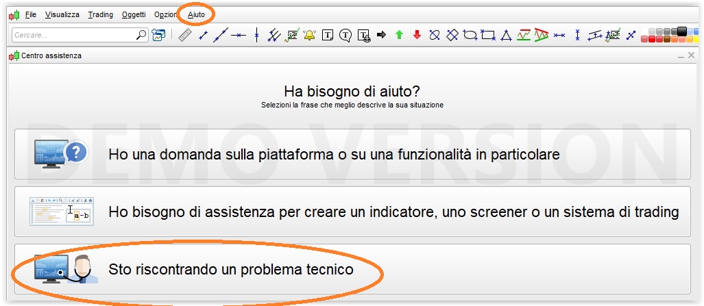 - Clicchi sul menù “Aiuto” sulla piattaforma ProRealTime