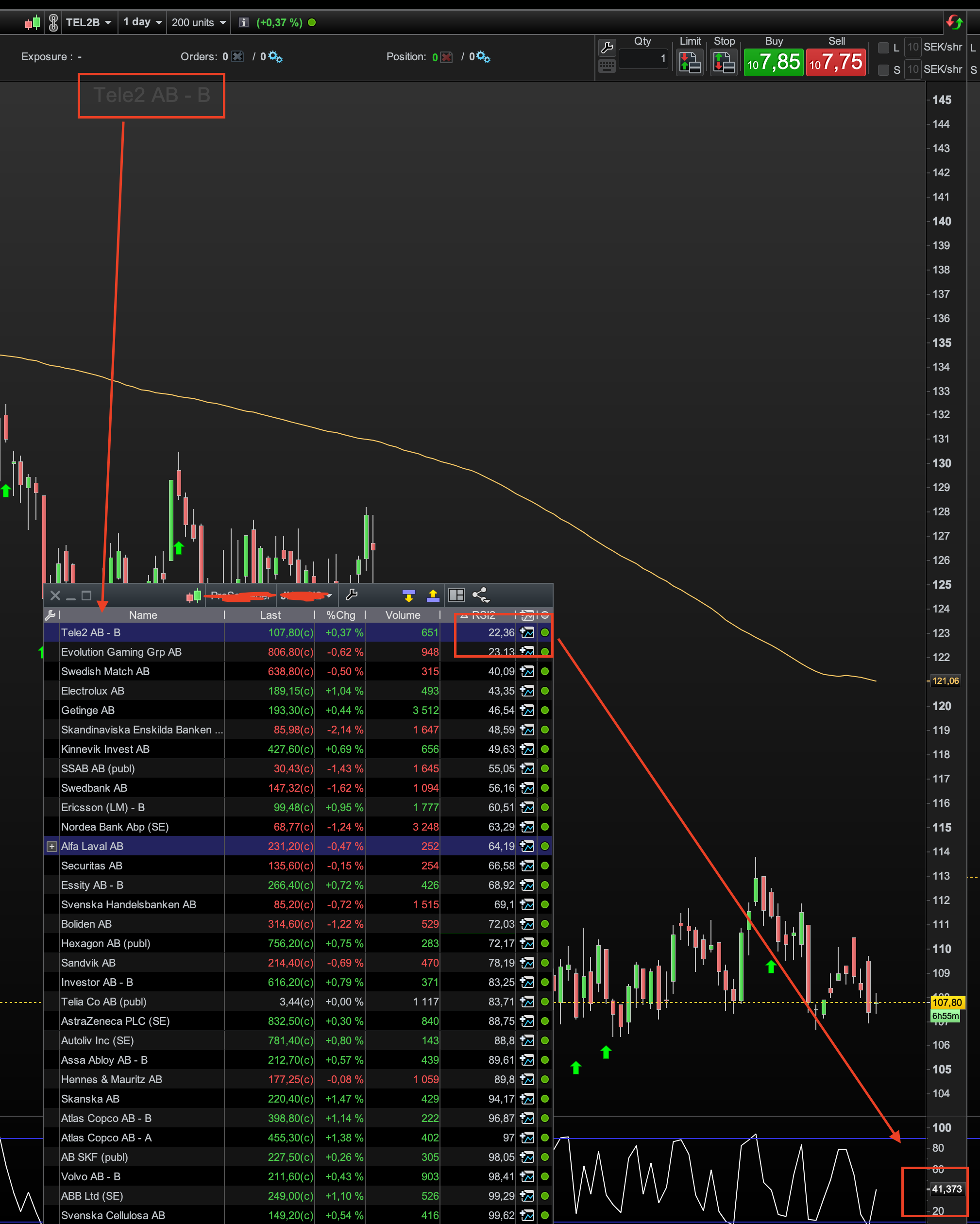 I have no difference at all on NYSE or NASDAQ lists. Are you sure you set an RSI to 2 periods on Close price on the chart? Do you have real time data for the market? What is your broker please?