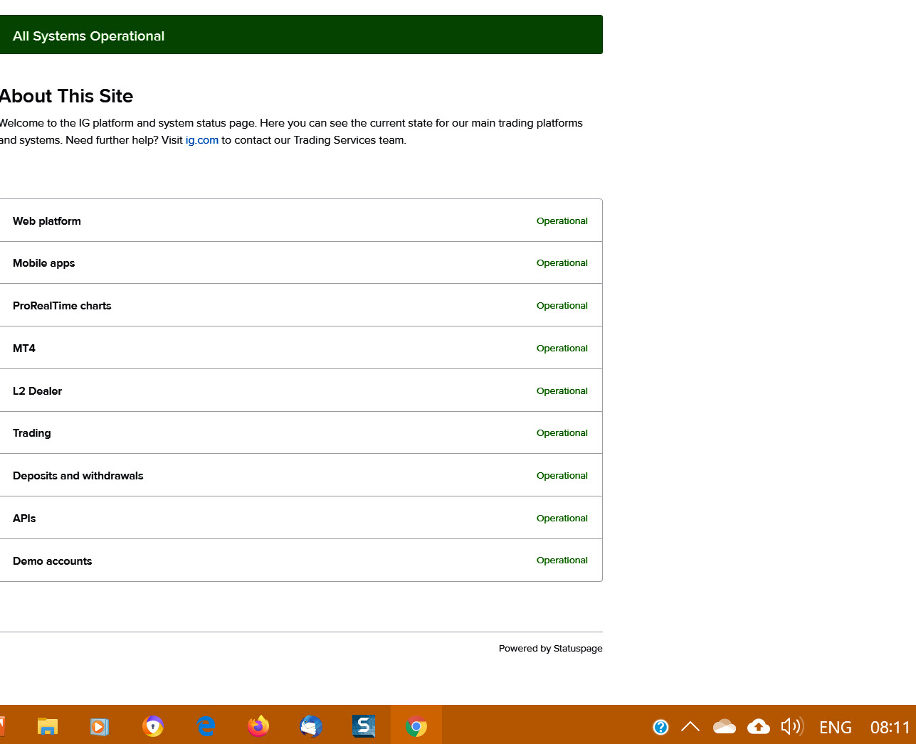 According to IG Status Page (attached @ 08:11) all is good, but I can’t login … I guess we are all in the same boat?