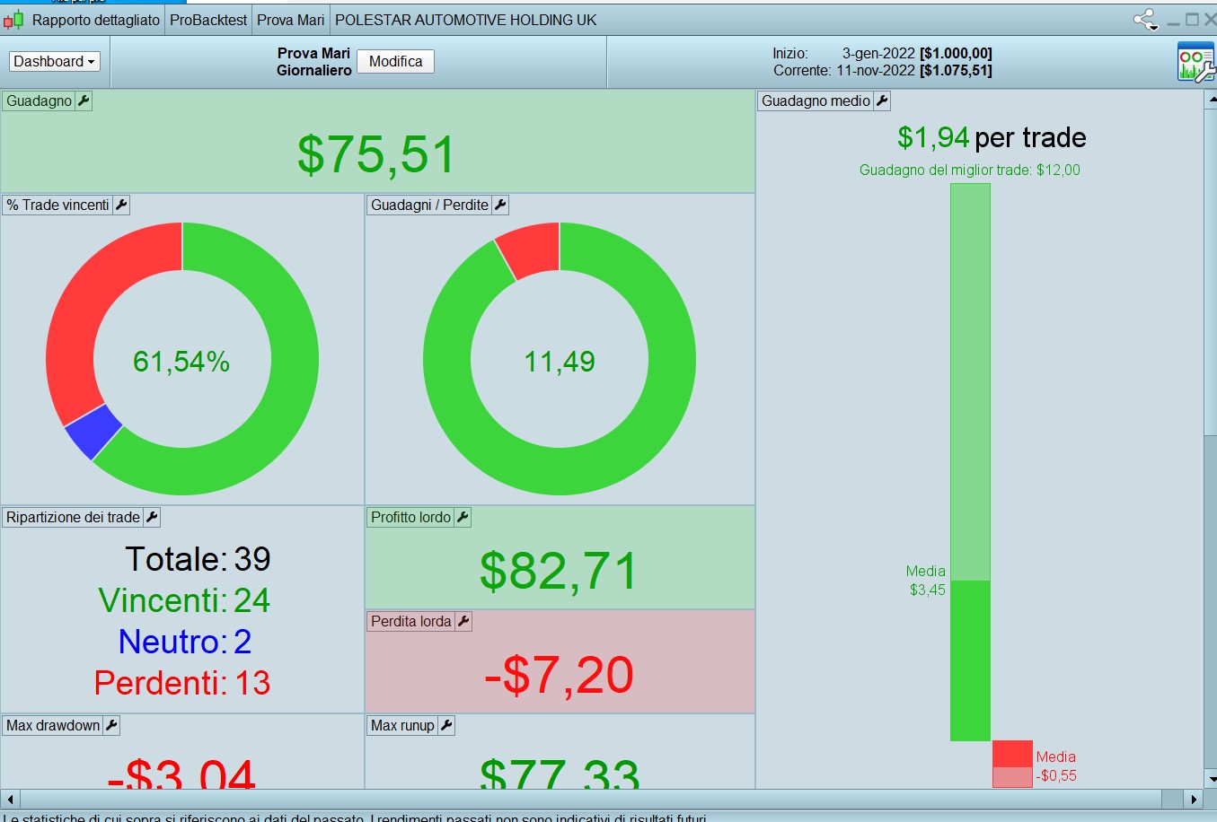 Buongiorno ho creato questo semplice TS ma non capisco dove sta l errore in quanto dovrebbe entrare long se l apertura della candela e maggiore del 10% ma non lo esegue mentre se metto 1.01 funziona dove sbaglio, allego una foto dove il titolo ha un gap > del 10% ma non fa l acquisto, se qualcuno mi può aiutare a trovare il mio errore, grazie