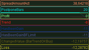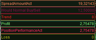 In the attachment you see the self-calculated spread of 38,64 at the top (orange) and the system-implied spread of 12.29 at the bottom (yellow). The 38.64 is correct (against the position) and the 12.29 makes no sense. This is for 0.8 pips in the Editor’s screen. Set the Editor to 0 and the 38,64 applies and I am in business. The system calculates 0 for spread indeed and you’re in control again. Now you can set your own spread to twice as low (0.4 in my example) and the 2nd attachment shows that truly (don’t look at the Profit in there because it currently is a tweaked job and the Spreads needs to be subtracted).