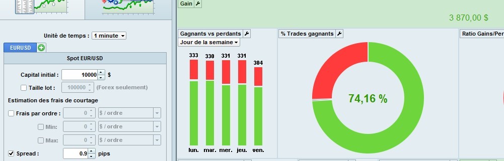 Subtracting e.g. 8 euros on the 100.000 of position times the number of trades, is easy to do and is a linear thing. So for example, see 3rd attachment. Gain is 1915 there and position is 480.000. Spread is 0.8 or 8 on the 100.000. Thus 4.4 * 8 = 35,20 (attachment 1 shows 38,64). This times 20 because of 20 trades = 704. Thus the real result will be 1915-704 = 1211.