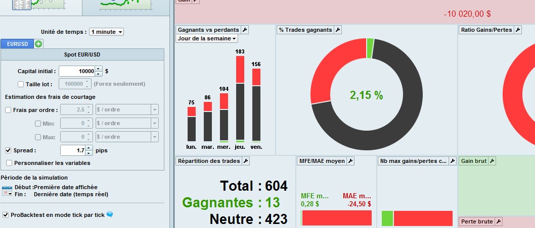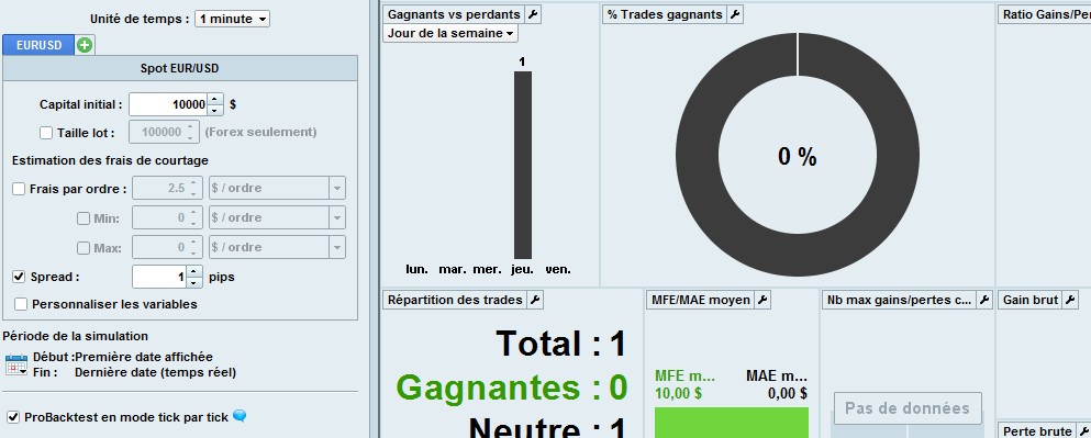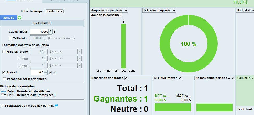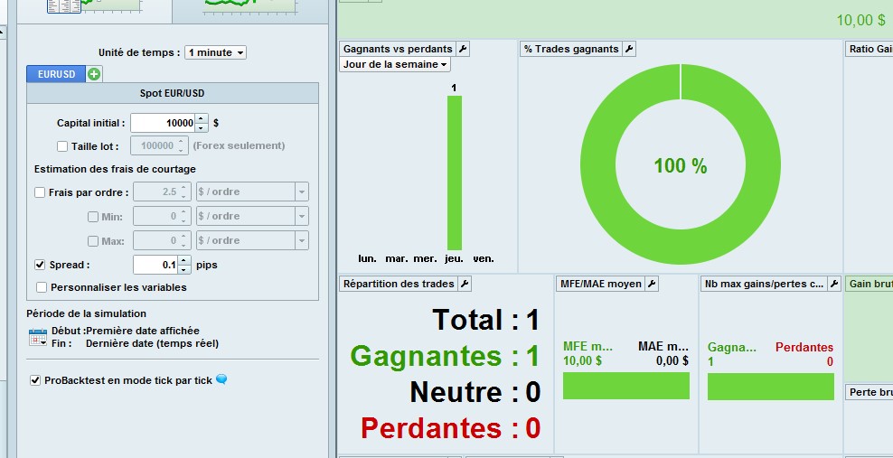 Block the algo to one trade ? Don’t see why it could be different ? As you see, same number of trades, and when the spread varies, the total gain don’t