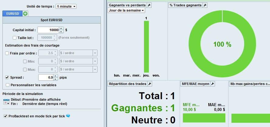 One trade only on EUR/USD 1 minute