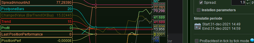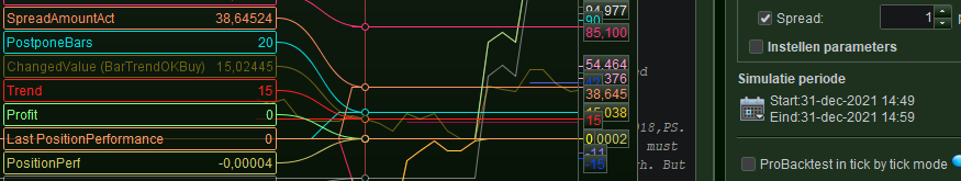 I have used one trade – and one trade only, for which a varied the Spread in the Editor from 0 to 1.7. The 1st attachment is just for reference. All the trades look like that except for the spread of 0 which shows in the 2nd attachment. I have organised it so that the TP is not relative to the desired profit, but merely is a fixed position (during trailing).