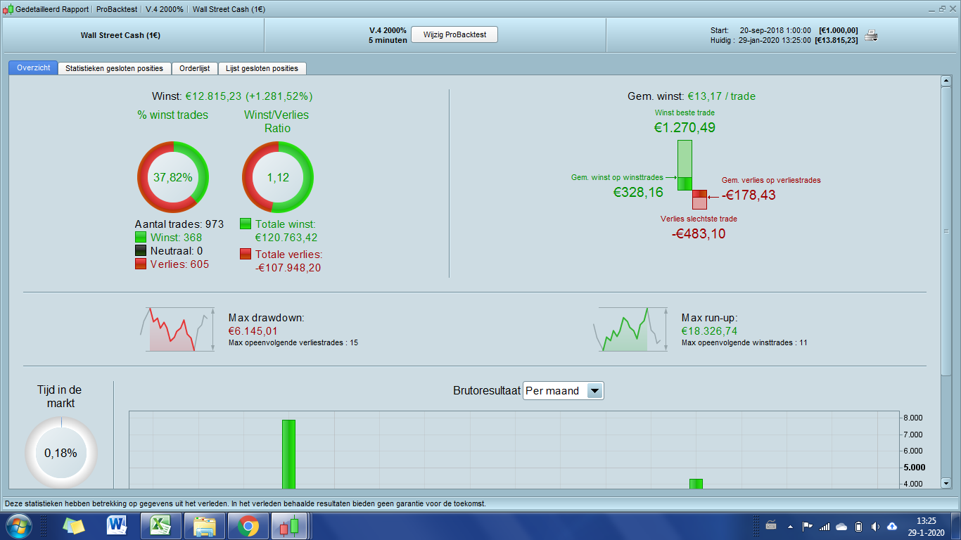The main issue I can spot is related to your initial capital (€ 1000) which is WAY TOO insufficient. You have a drawdown exceeding € 6000, so a better initial capital would be € 20000 (and performance would be more accurate).