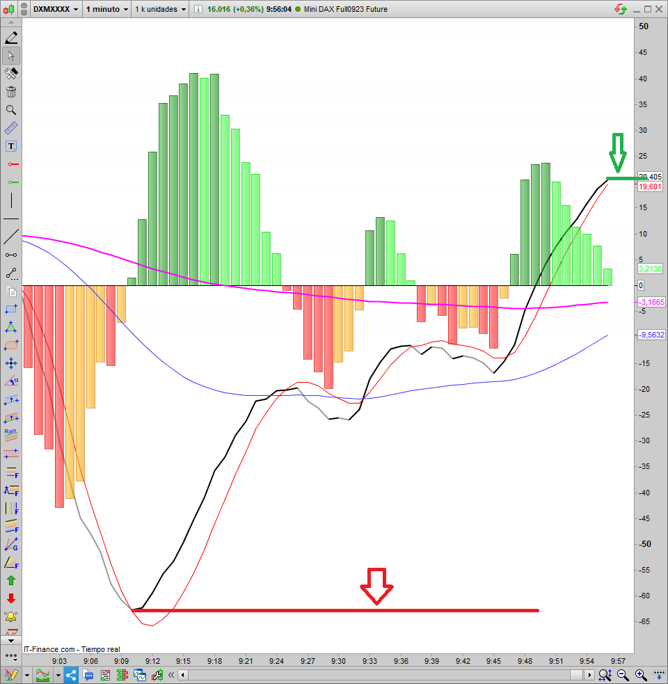 Cual sería el código para que en un rango de X PERIOD … me pueda dibujar el mínimo/máximo del MACD en el propio indicador ??? para que no deba tirar rayas¿