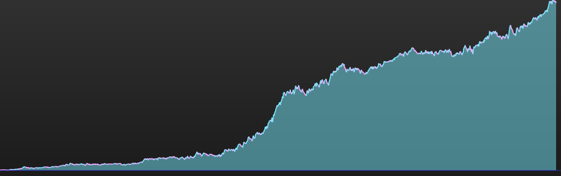 Comme vous pouvez le voir ci-dessous, sur les positions longues j’ai un Drawdown max de 28%. Or quand je regarde ma courbe de gains & pertes, je ne visualise pas de baisse de 28%. J’ai vérifié ca n’a pas l’air de se trouver dans les premiers mois où en effet on ne voit pas trop la courbe.