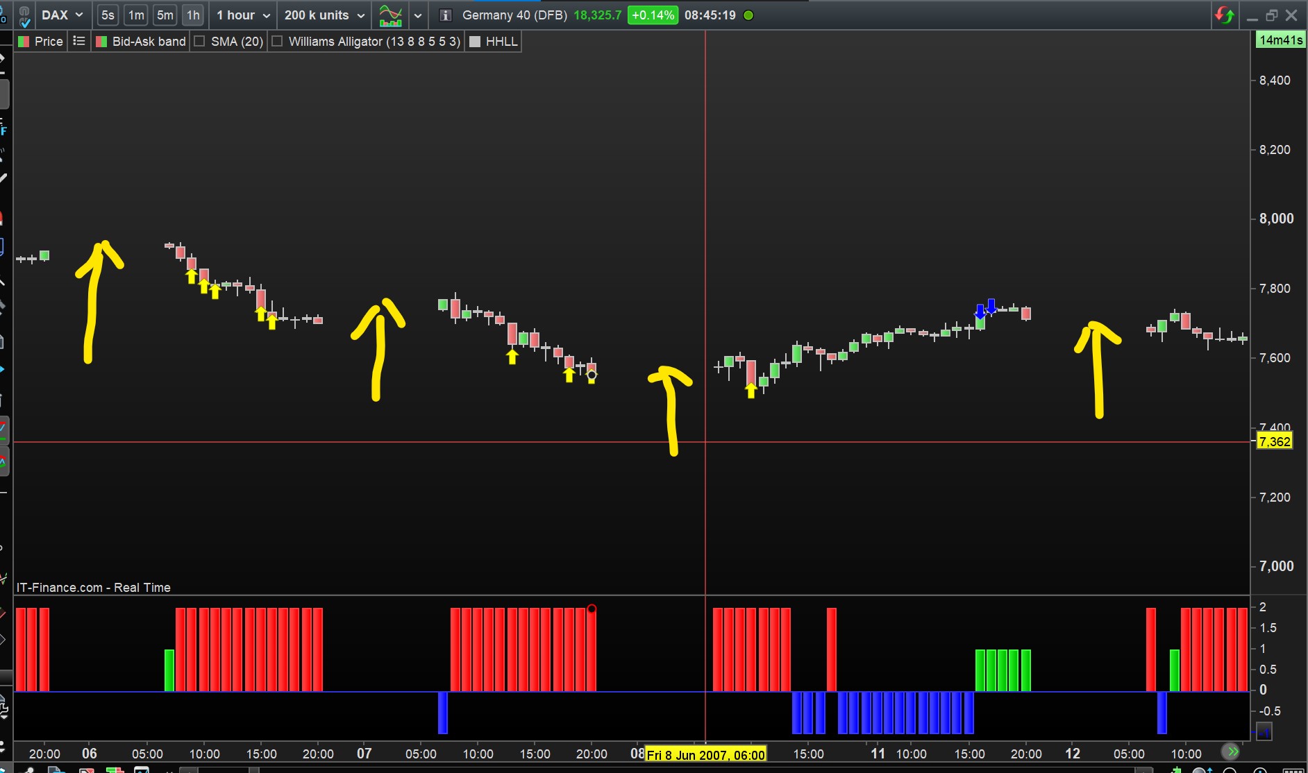 Thanks. The example that I had with missing bars now displays correctly. Maybe I was just tired yesterday. The weird gap happens between the 7:45 and the 8:00, so it might just be the gap between the broker’s fictionnal night prices and the actual price at the opening of the future DAX.