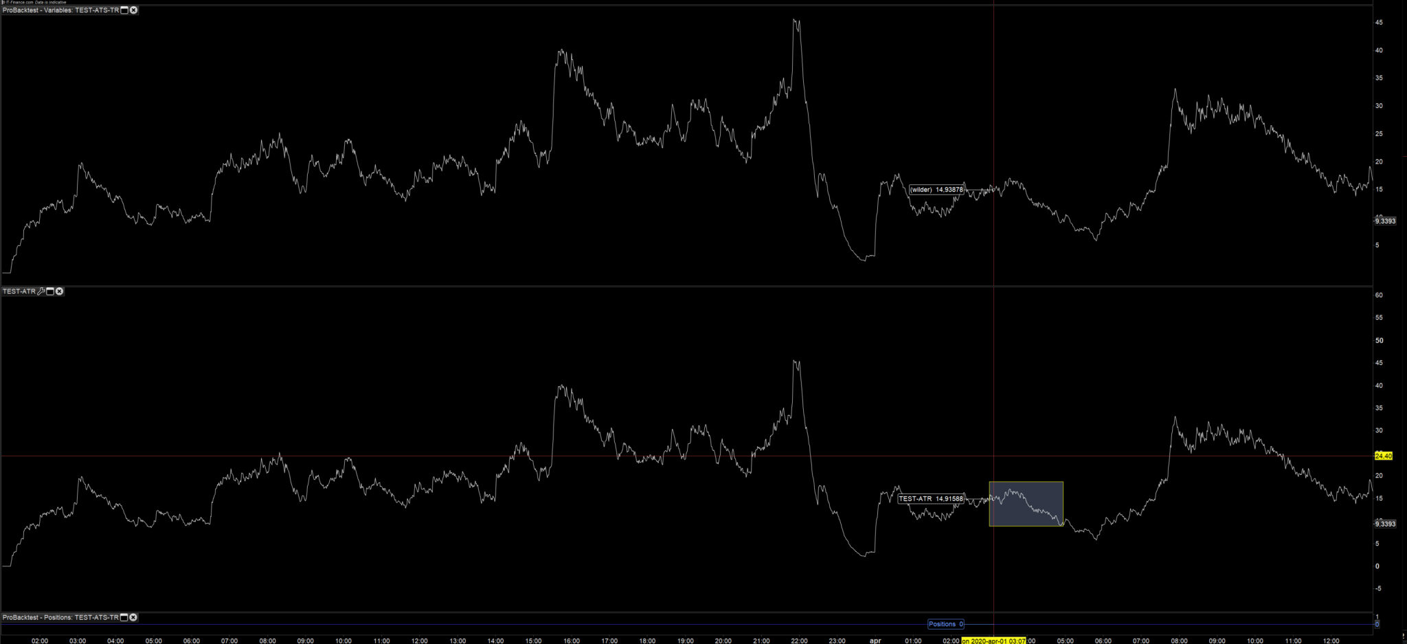 Do you know of the best code for AverageTrueRange in order to overcome this issue and sync the view of ProOrder and Probuilder? I have used your Wilder code as described above in the post on manually generated TR, however it seems to create incorrect values. They are synced, but I’m not sure they are correct to the real Average True Range. Both the built-in functions AverageTrueRange and the use of Wilder Average (AVERAGE[timeperiod,3](TR) takes in the preload-bar and causes a problem with inconsistent numbers for comparing executions to the actual price.