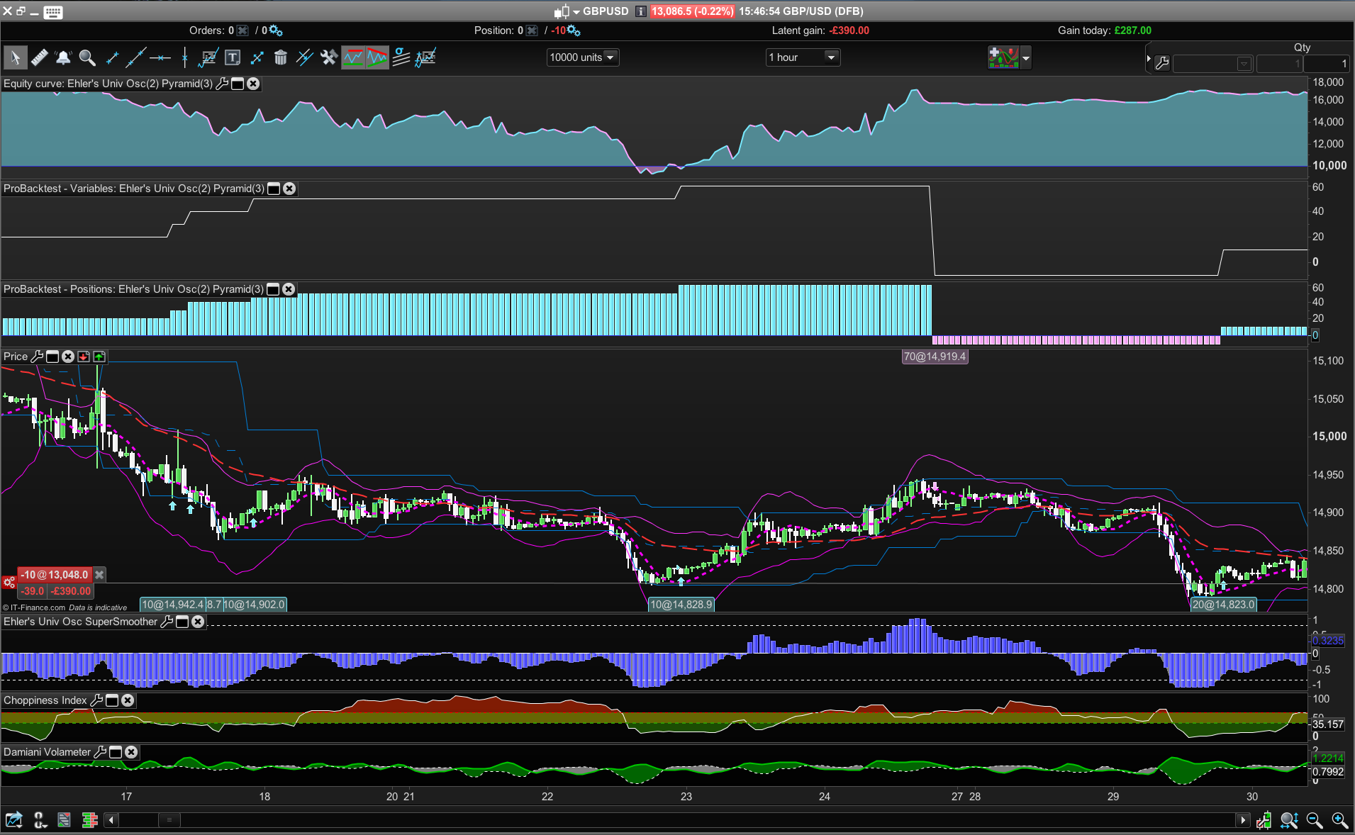 c1 is a long trade based on the Ehler’s Universal Supersmoother Oscillator (found in the PRT indicator section in this forum) crossing over the -0.8 threshold. Yet it won’t take the second and third positions?