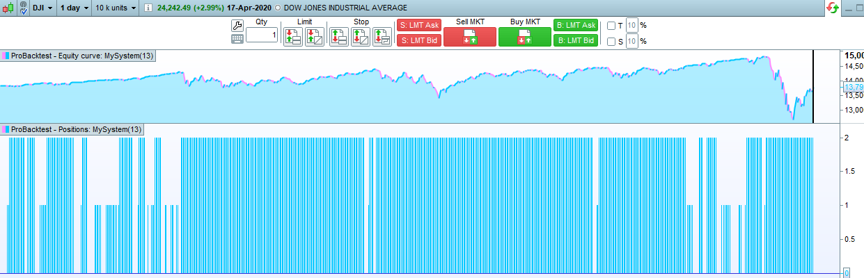 I would like to do a twist on the above code and instead create a trigger to increase a position with x contracts if the current position is down x %. I could really use some help since I failed with my own poor skills…