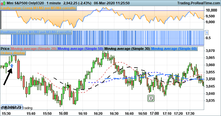 Lo strumento è il Mini S&P500 Only0320, il TF 1 min. su un intervallo di 5 giorni.