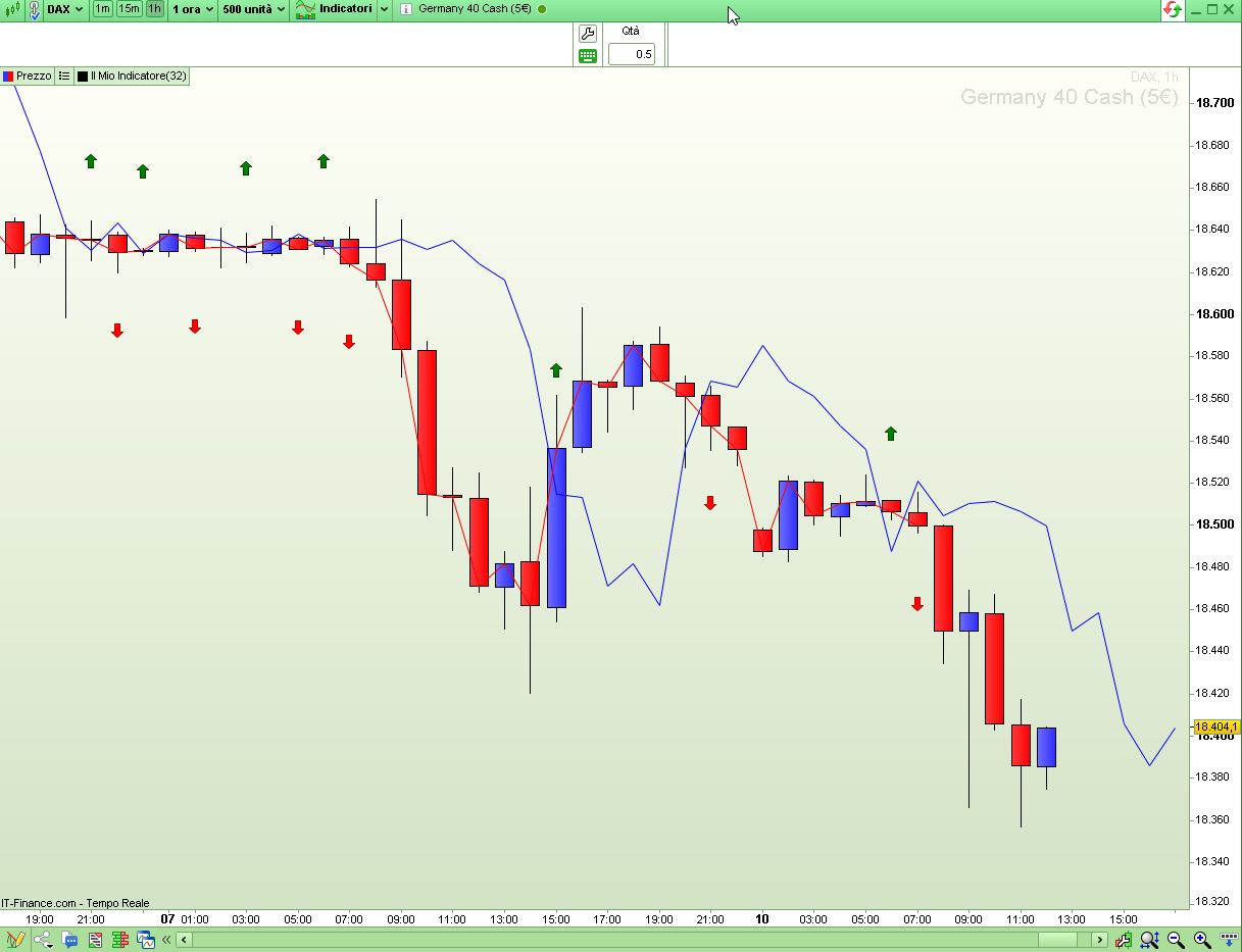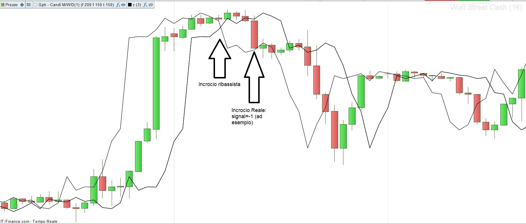 ho scritto un indicatore grafico sul prezzo, che trasla close nel passato e nel futuro di n posti. Vorrei sapere in quale candela avviene l’incrocio tra close traslato in passato e close traslato in futuro. Ecco il codice: