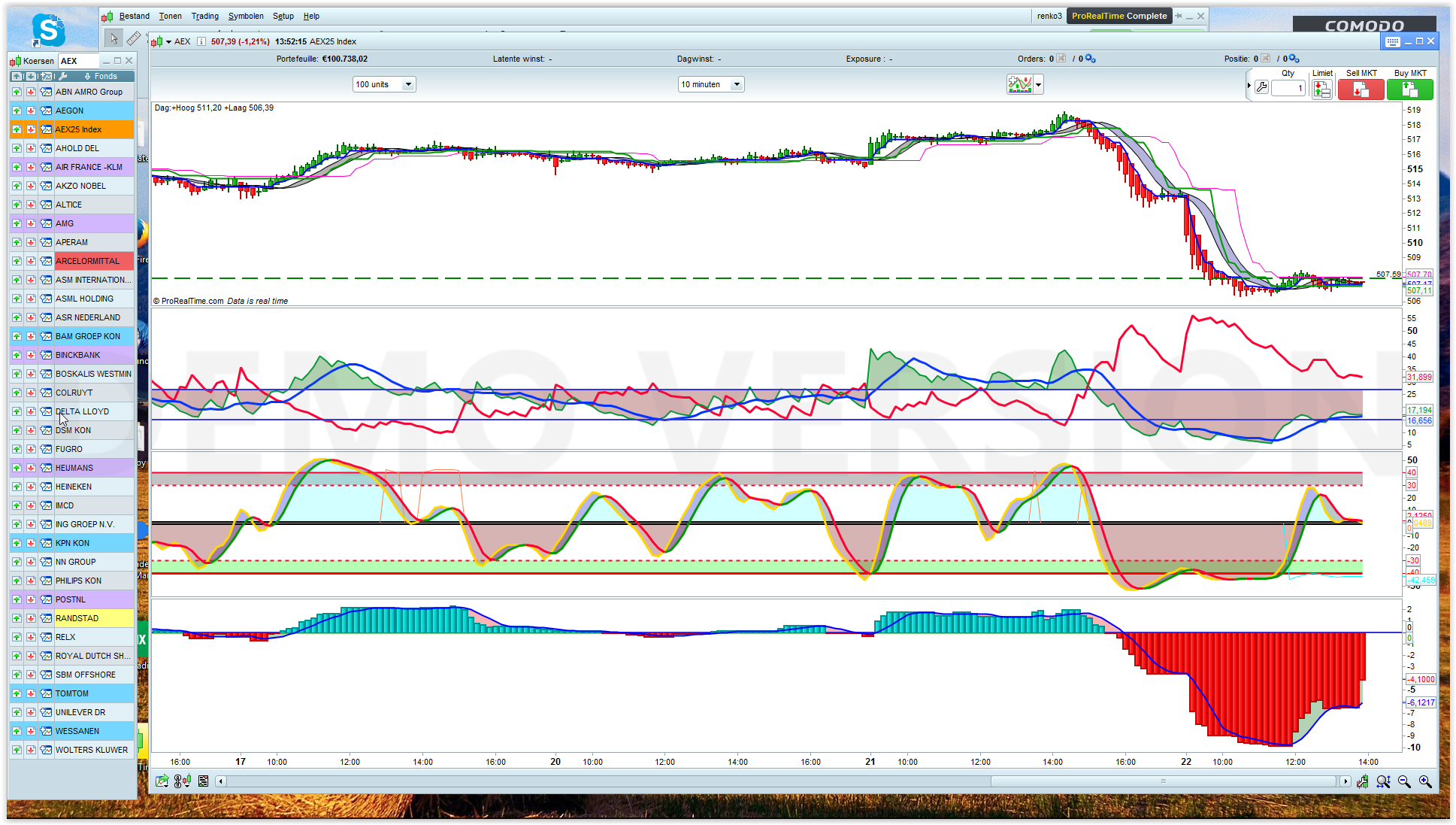 i get only the indicator on the AEX INDEX ON SHARES the indicator is at zero line flat
