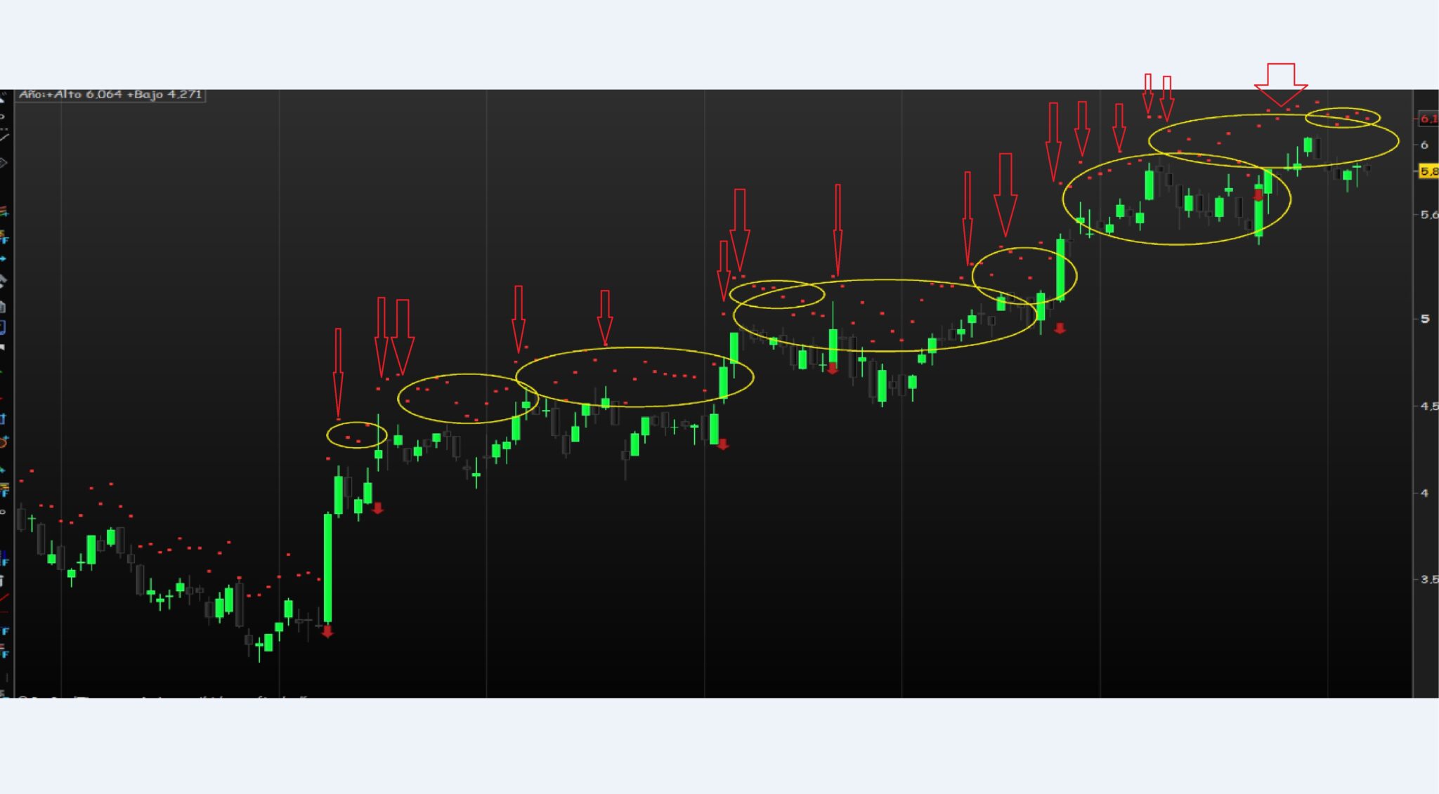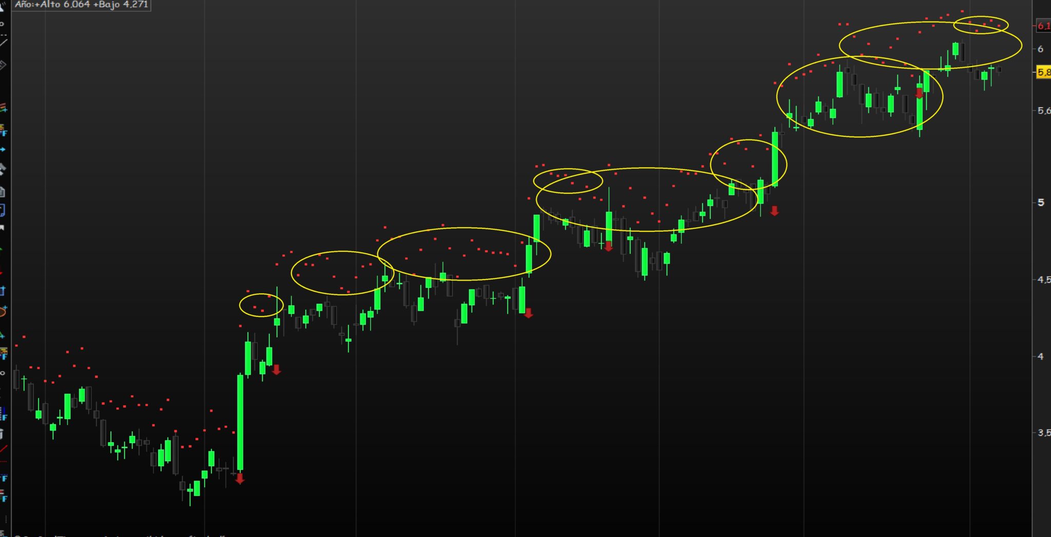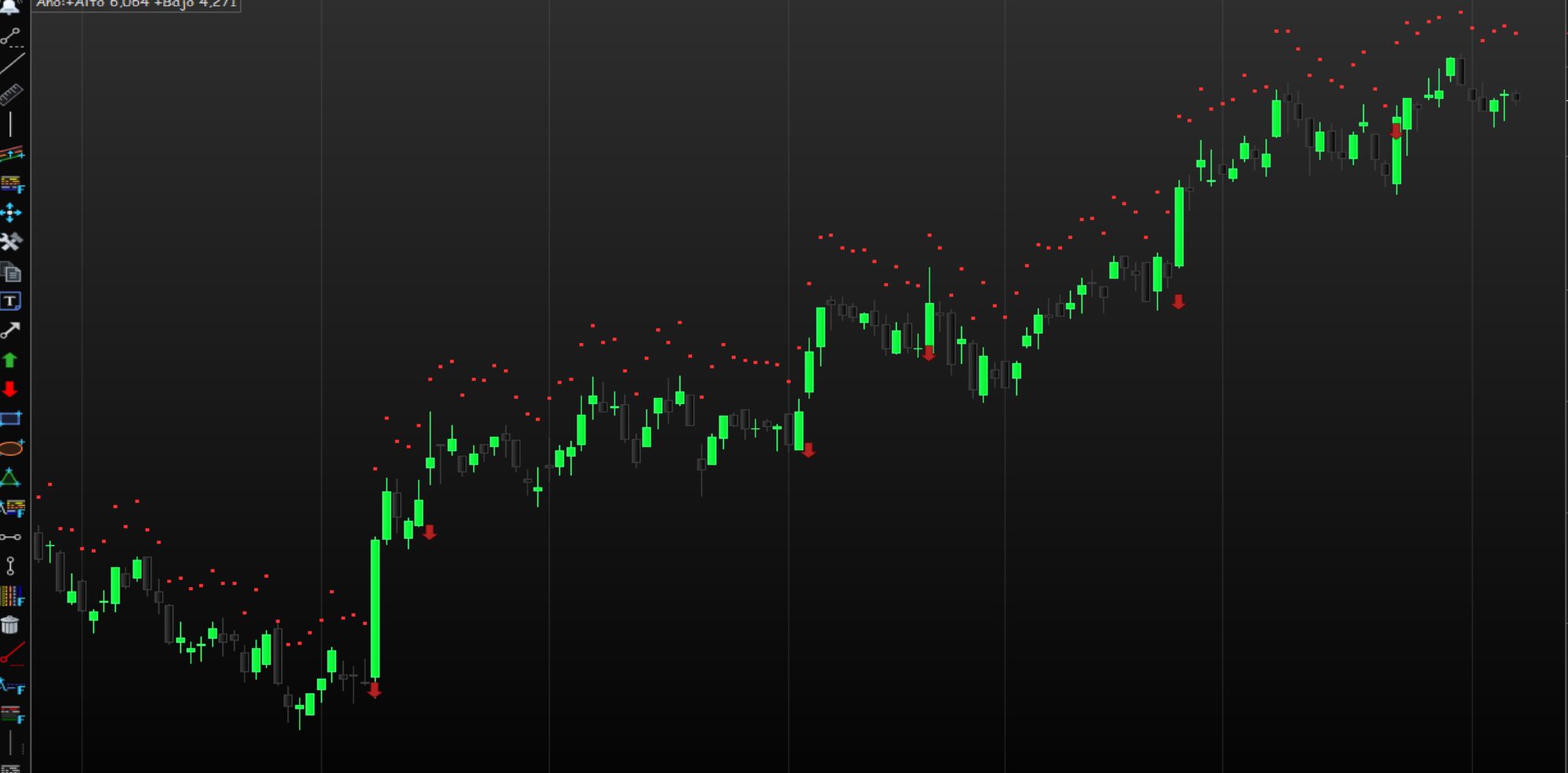 Si se da cuenta los puntos del ATR se marcan de acuerdo al cálculo del propio ATR, yo quiero que no desciendan con respecto al anterior ATR, para así mantener mi stop loss con el anterior máximo.