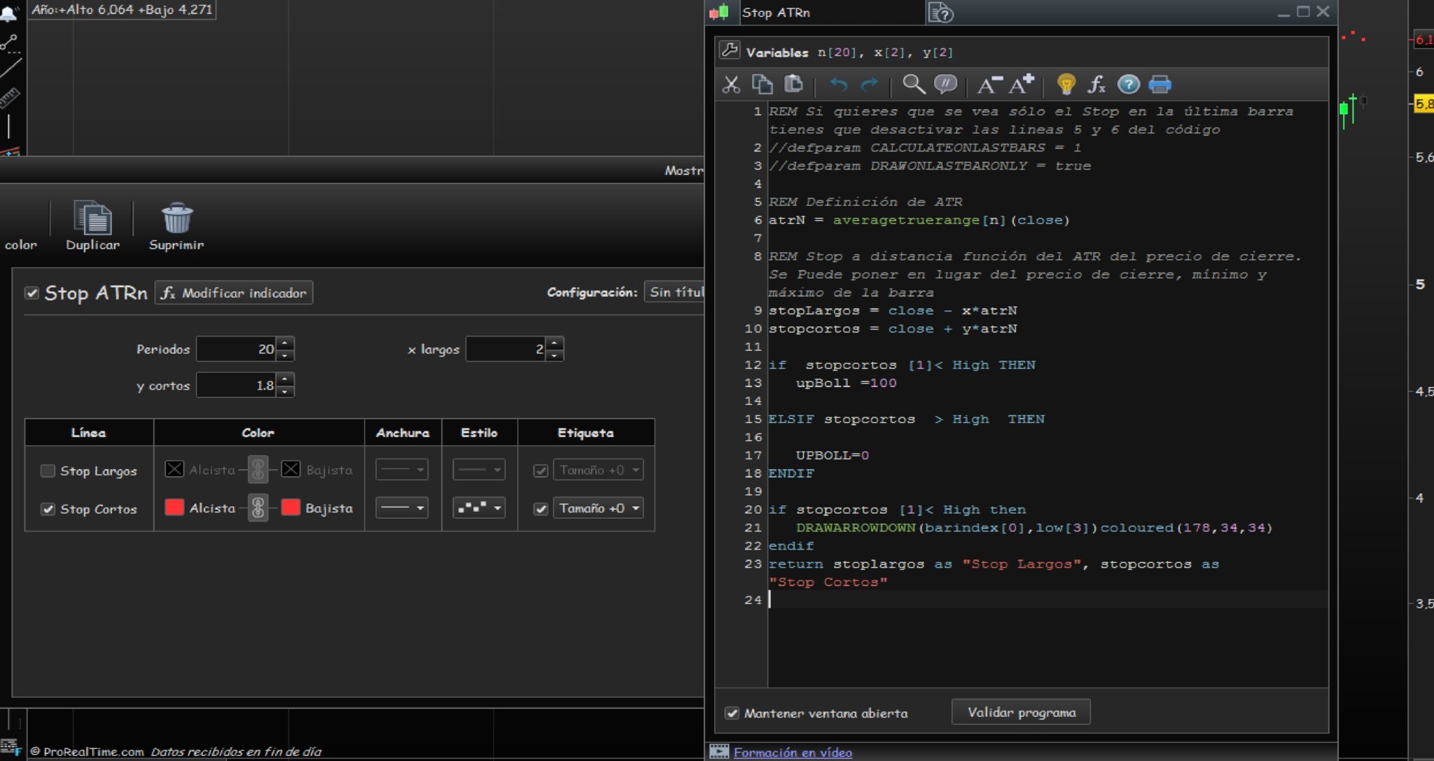 stopCortos = close + y*atrN