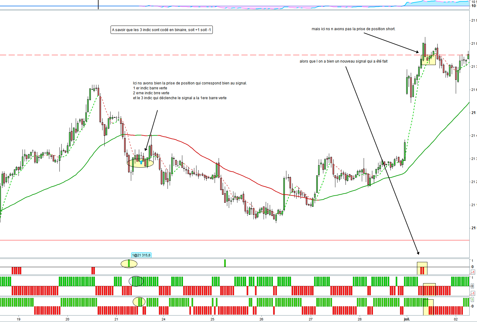 il n y a pas eu de prise de position (rectangle jaune), dans notre exemple il aurait du déclencher “2” vente,