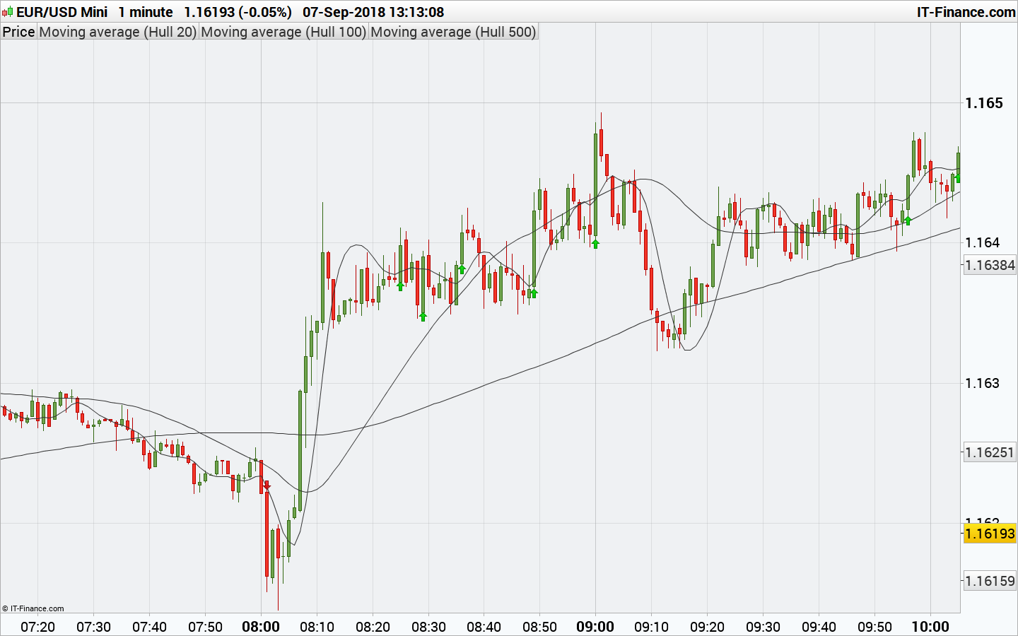 drawarrowup(barindex,low) coloured(0,200,0)