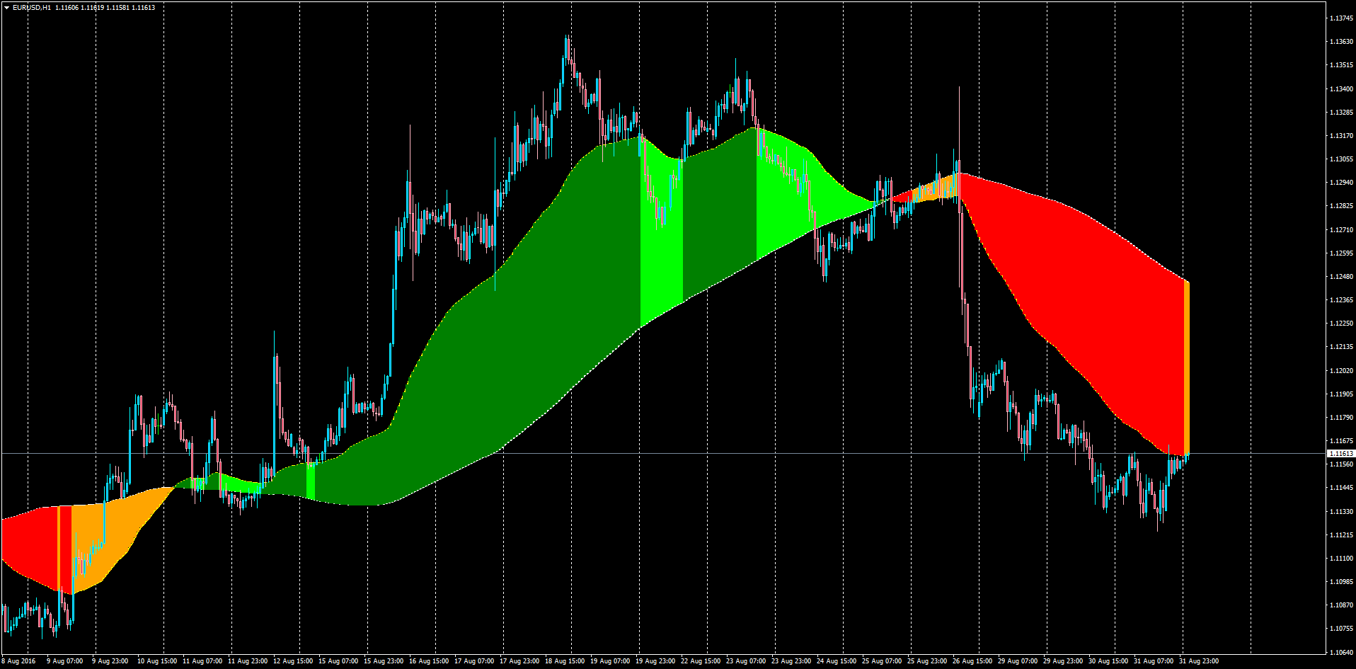 The relationship between moving average determines the color of the clouds.