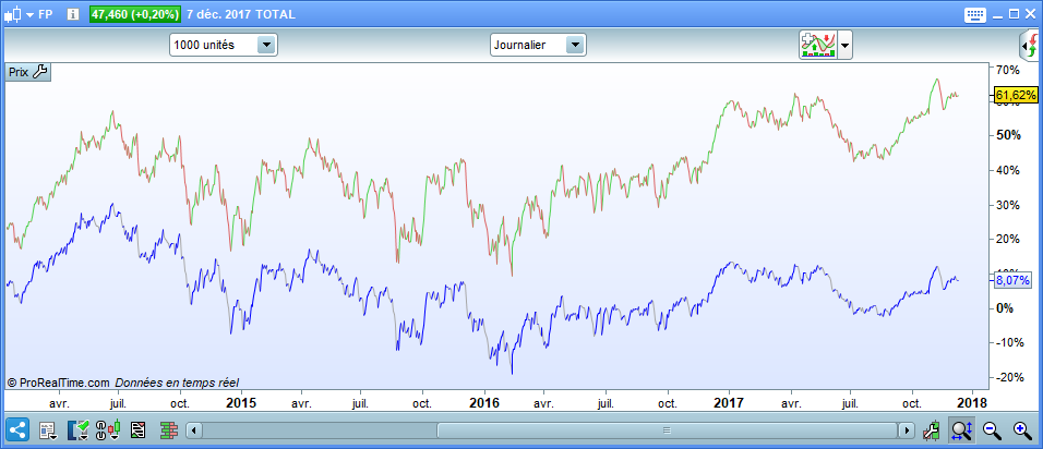 Par exemple si je suis sur l’action Total, l’indicateur affiche l’indice du secteur pétrolier