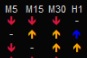 je voudrais une sorte de dashboard comme l’image ci joint qui m’indique la tendance par une flèche rouge pointé vers le bas (tendance baissière) ou verte pointé vers le haut (tendance haussière) et si c’est condition ne sont pas réunis alors une fleche noir horizontale pour le neutre pour chaque UT M5, M15 et H1.