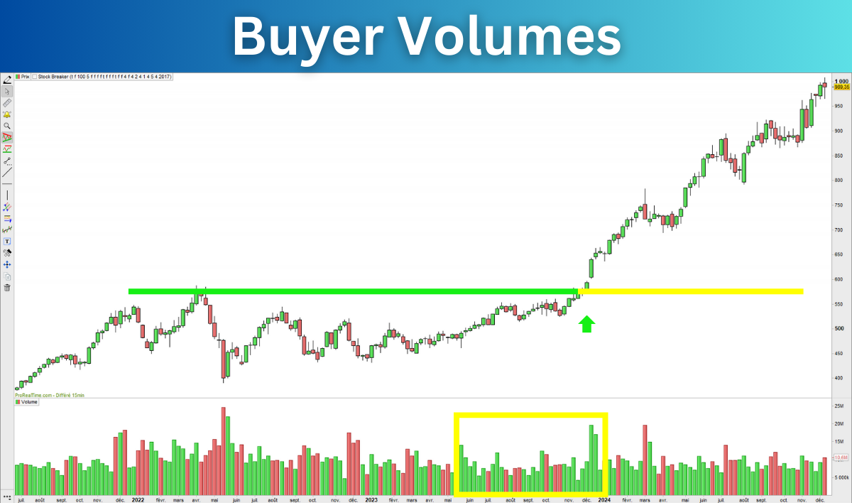 L’indicateur Stock Breaker détecte les cassures de ces niveaux de prix clé. Il va vous aider à ouvrir des positions dans des phases d’accélérations puissantes. 🚀