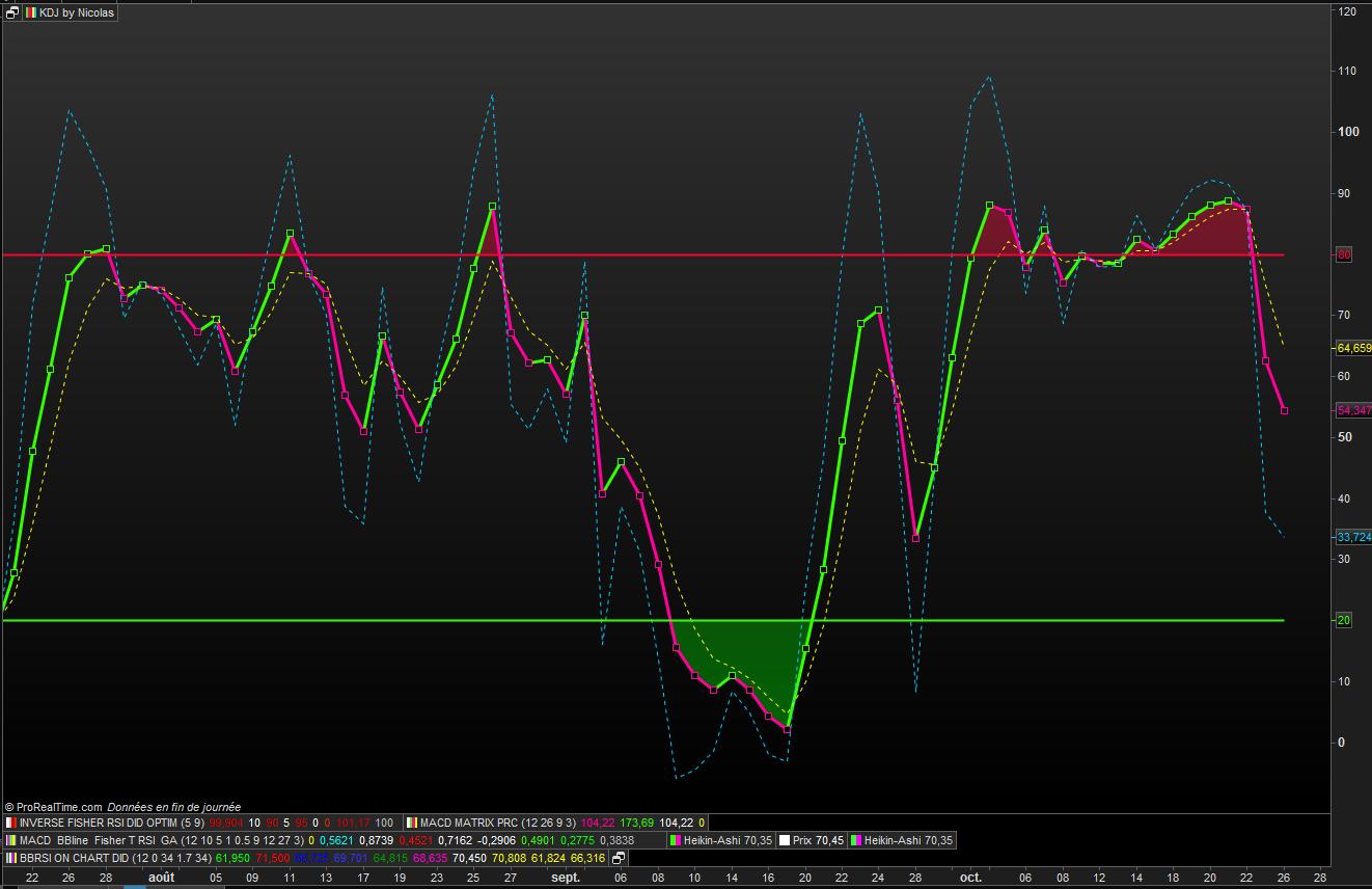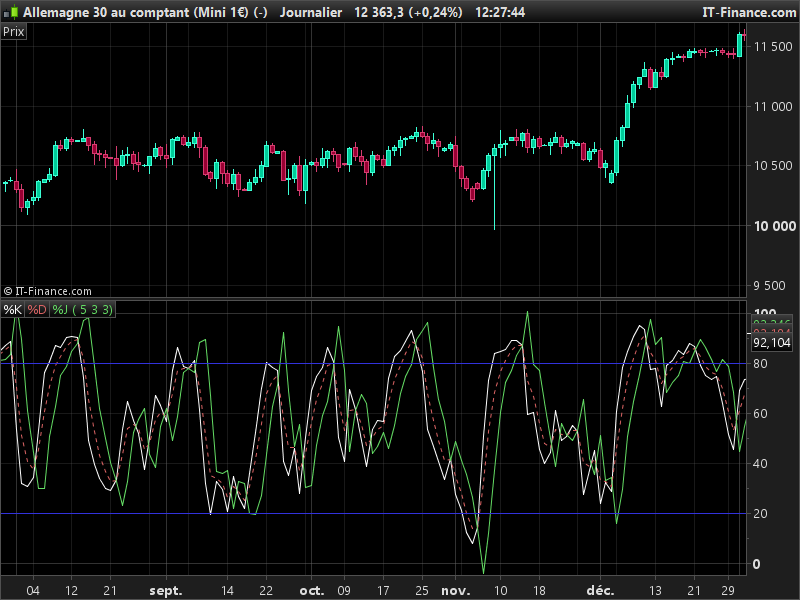 D’après le concepteur on rajoutera les lignes 20 et 80 comme zone de sur-achat et survente pour cet indicateur stochastique.