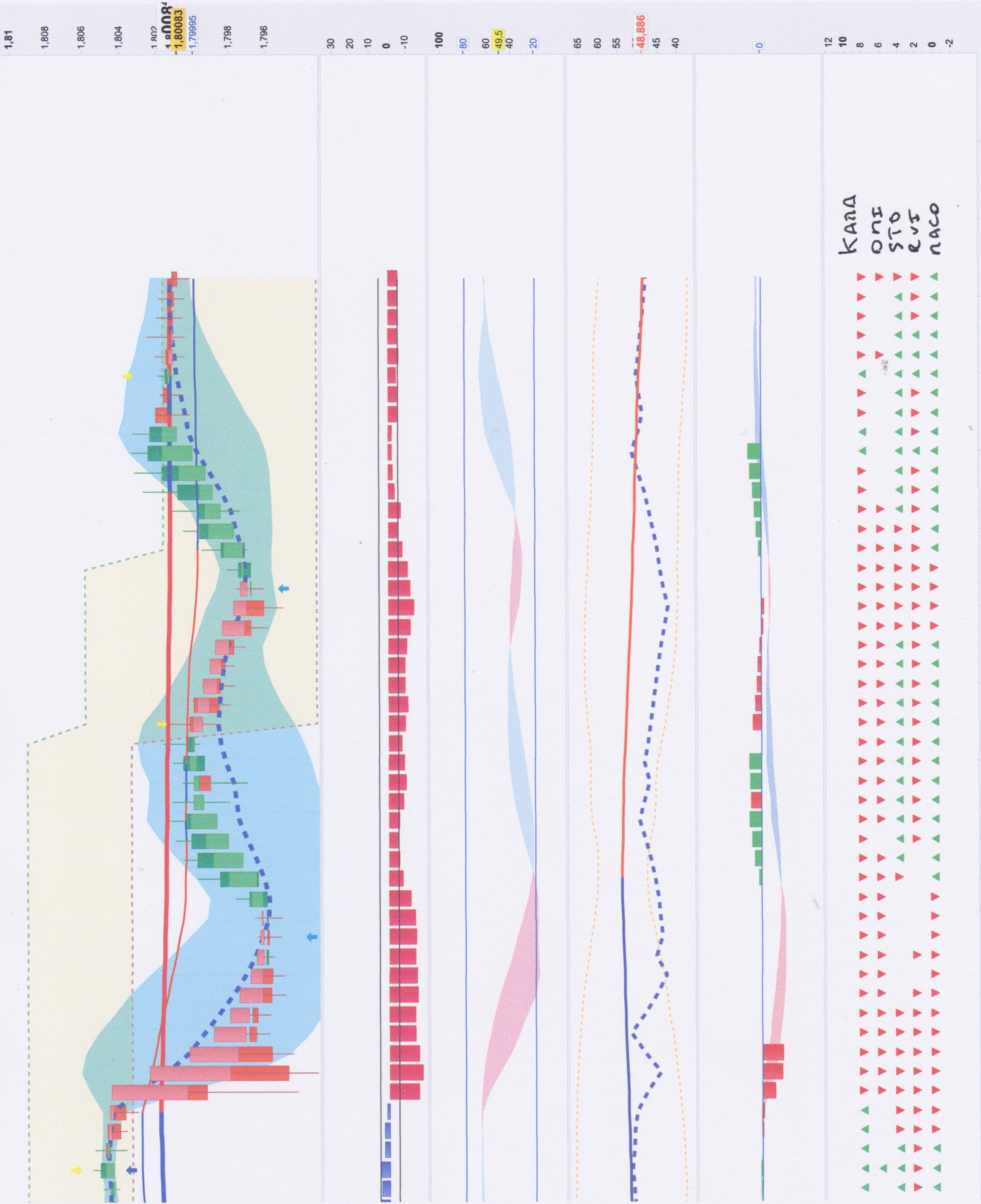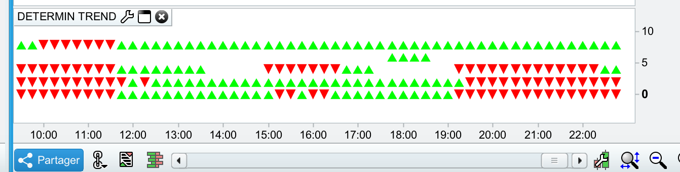 Non, je crois que je vais faire un scan d’un dessin pour matérialiser ma demande. Ce sera plus simple. Pour revenir à ma demande, je souhaiterai que à la droite de la dernière flèche de droite (donc est soit verte et orientée vers le haut si l’indicateur 1 > indicateur 2 et vice versa), soit marqué les lettres “STO” pour simplement indiquer que sur cette ligne les flèches correspondent à la position des indicateurs sur le timeframe indiqué.