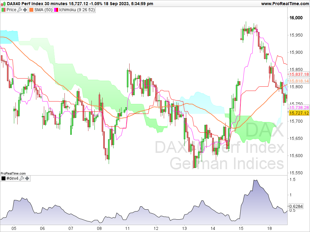 J’ai codé un indicateur tout simple de cassure kijun ou tenkan sur du 1 minute avec comme condition la tendance de l’ut supérieure (15 minutes). Vous trouverez mon indicateur ci-dessous, par contre j’aimerai l’améliorer et rajouter une condition qui me semble importante, à savoir lorsque la mm50, la kijun et la tenkan sont très proches, mais j’ai beau essayé je n’y parviens pas. Si quelqu’un pouvait me venir en aide ?