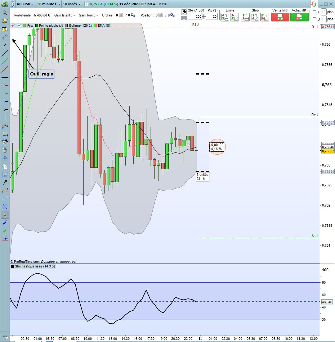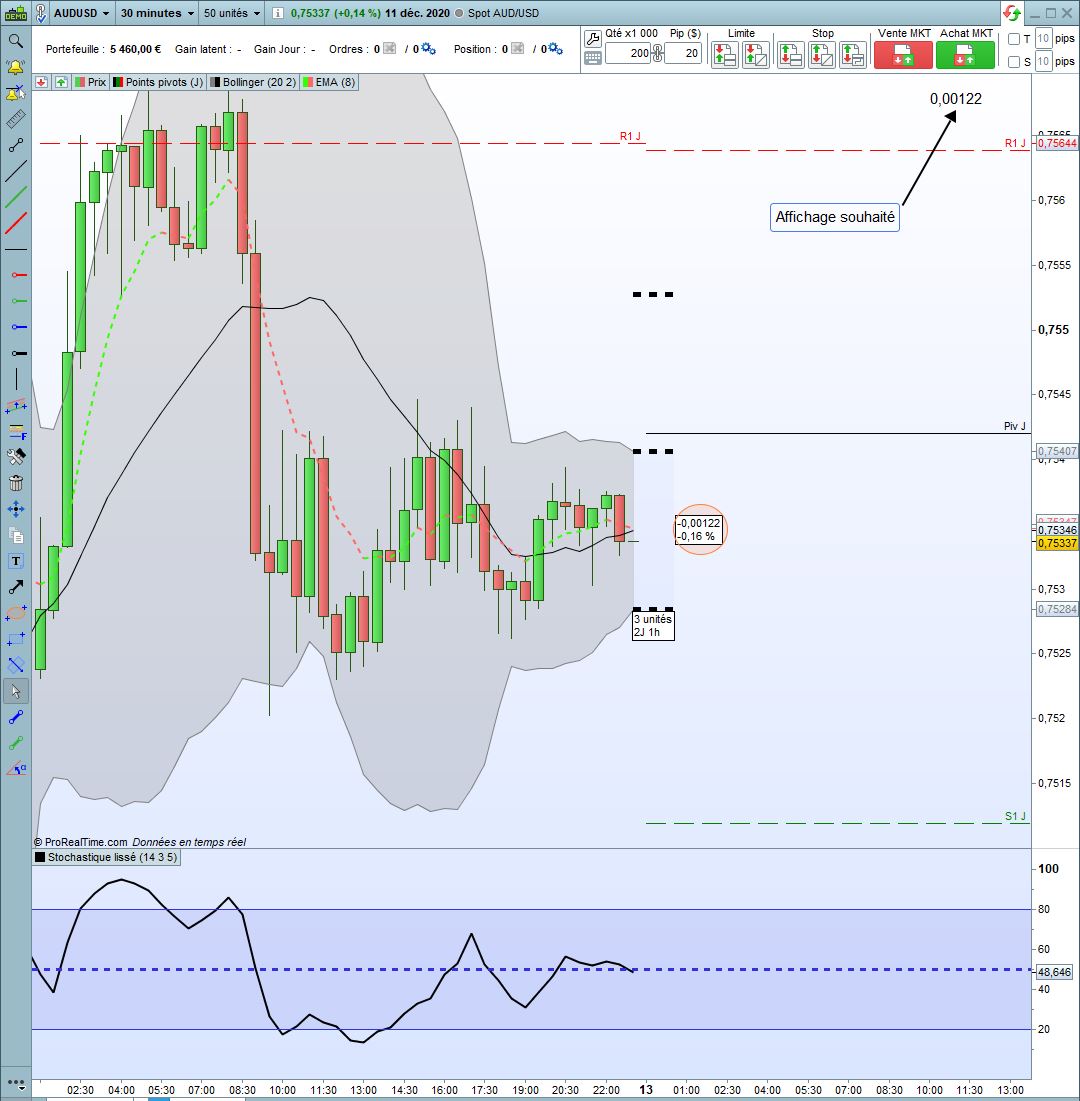 Je cherche à faire apparaître sur mes graphiques, la valeur en pips entre la bande de bollinger supérieure et la bande de bollinger inférieure.