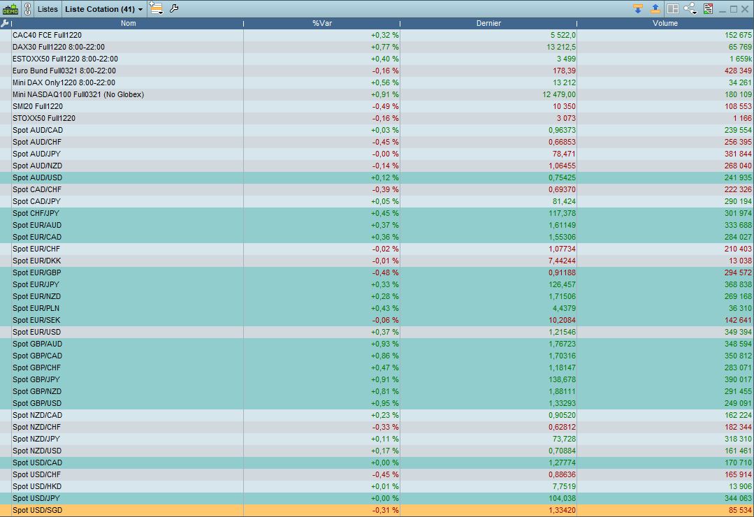 Est-il possible de surligner en vert les paires de devises dans la liste, quand il y a plus de 50 pips?