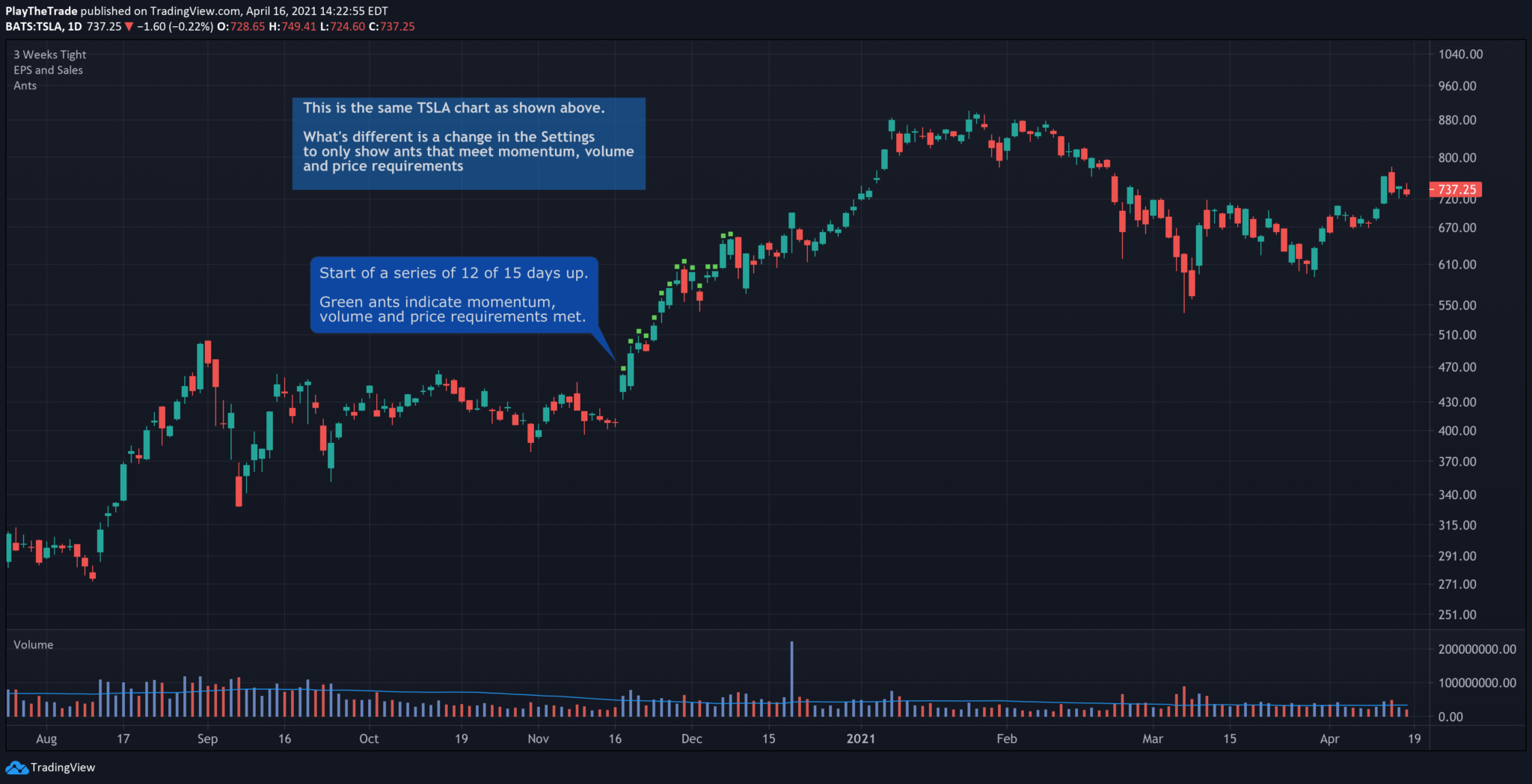 Il s’agit du ANTS indicator issu des travaux de David Ryan , grand admirateur de William O Neill . Il indique lorsque une valeur à un momentum particulier à configuration graphique identique.