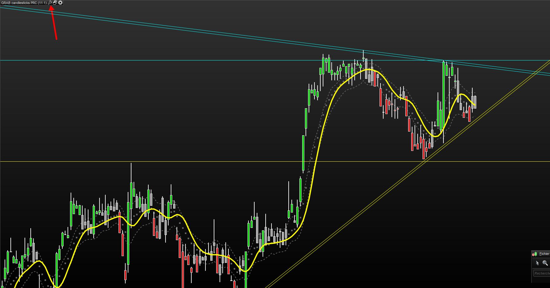 De mémoire les fractals sous MT4 ont des flèches inversées, mais ici je les ai mises dans le bon sens (si toutefois il y a un bon sens ..), en grises et semi transparente. La valeur de cp est par défaut à 2 bougies. Je pense que cela doit correspondre à ton attente, sinon fait moi part de tes remarques.